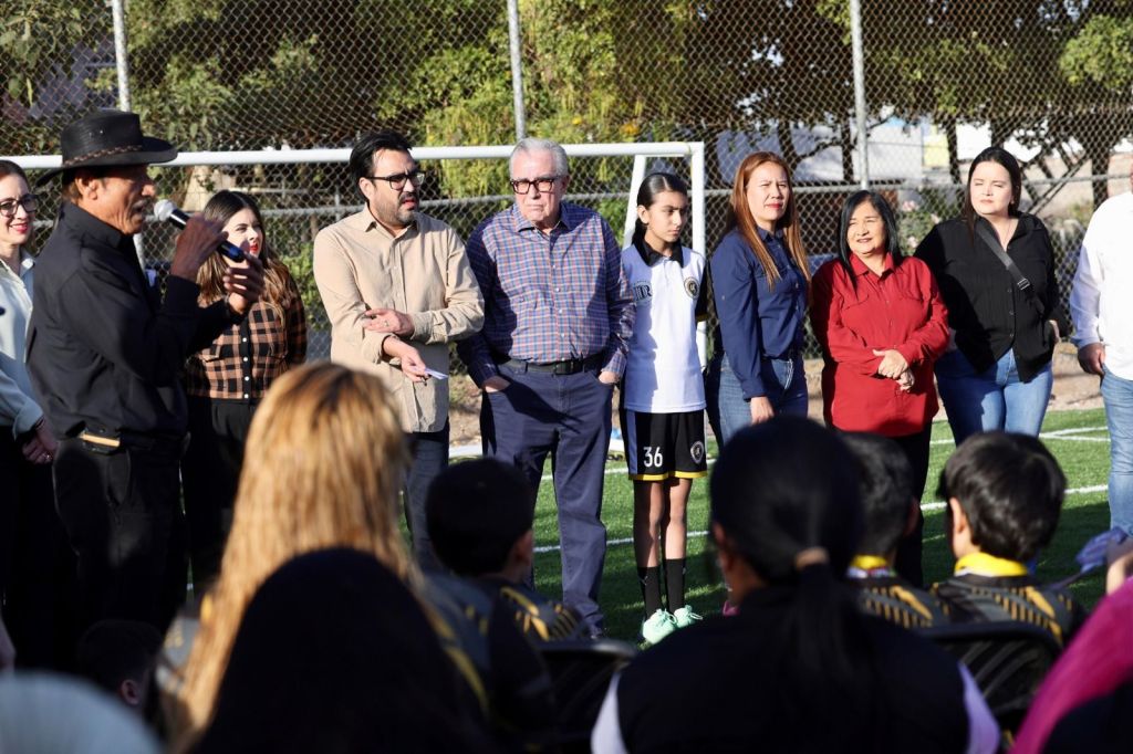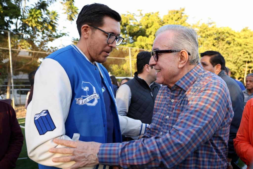 El mandatario estatal y el alcalde Juan de Dios Gámez entregaron la rehabilitación del campo de futbol, baños y 3 obras de pavimentación con una inversión superior a los 4.3 millones de pesos.