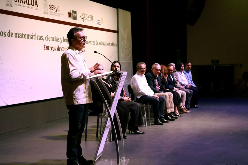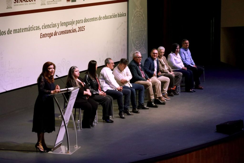 Culiacán, Sinaloa, a 8 de febrero de 2025.- Al entregar sus reconocimientos a 350 maestros que cursaron el Diplomado de Matemáticas, Ciencias y Lenguaje para Docentes de Educación Básica, el gobernador Rubén Rocha Moya instruyó a la titular de la SEPyC, Gloria Himelda Félix Niebla, para convertir este Diplomado en una Maestría en Enseñanza de la Ciencia, para mejorar la calidad educativa que se imparte a la niñez sinaloense.