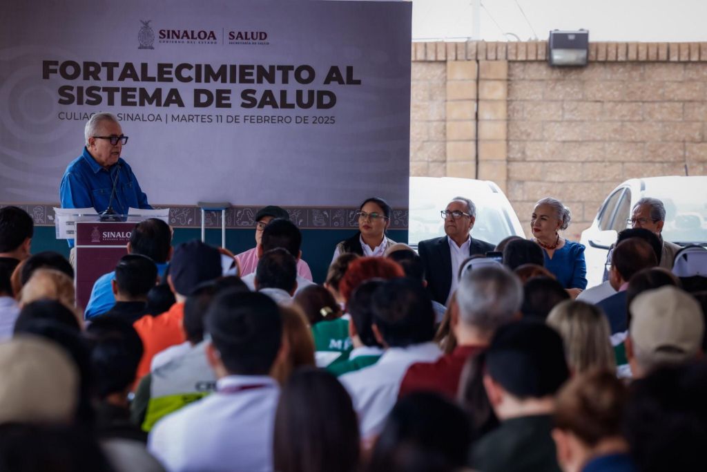 Culiacán, Sinaloa 11 de febrero de 2025.- Comprometido con mejorar la calidad de vida, la atención sanitaria, así como fortalecer el sistema de salud en beneficio de los sinaloenses, el Gobernador Rubén Rocha Moya acompañado del Secretario de Salud Cuitláhuac González Galindo, inauguraron el acelerador lineal y la sala de entrenamiento de reanimación neonatal en los hospitales de Cancerología y de la Mujer, respectivamente, además entregaron equipamiento a las jurisdicciones sanitarias, a fin de reforzar los programas de salud y dengue.