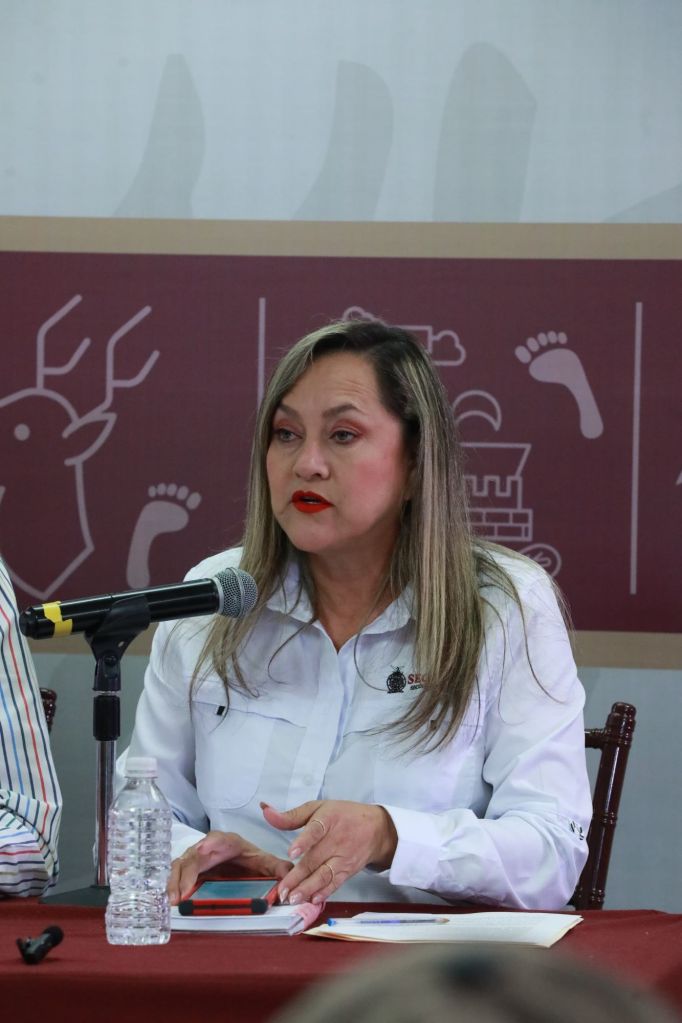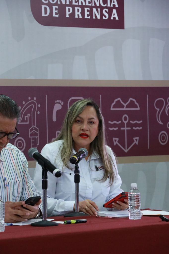 Culiacán, Sinaloa, 13 de febrero de 2025.- Durante la conferencia de prensa de la Vocería del Gobierno del Estado que encabeza el secretario General de Gobierno, Feliciano Castro Meléndrez, la vocera de la Secretaría de Seguridad Pública del Estado, Verona Hernández Valenzuela, dio a conocer los resultados de las acciones realizadas por el Grupo Interinstitucional este 12 de febrero y del operativo realizado al interior del Centro Penitenciario de Aguaruto en Culiacán este día.