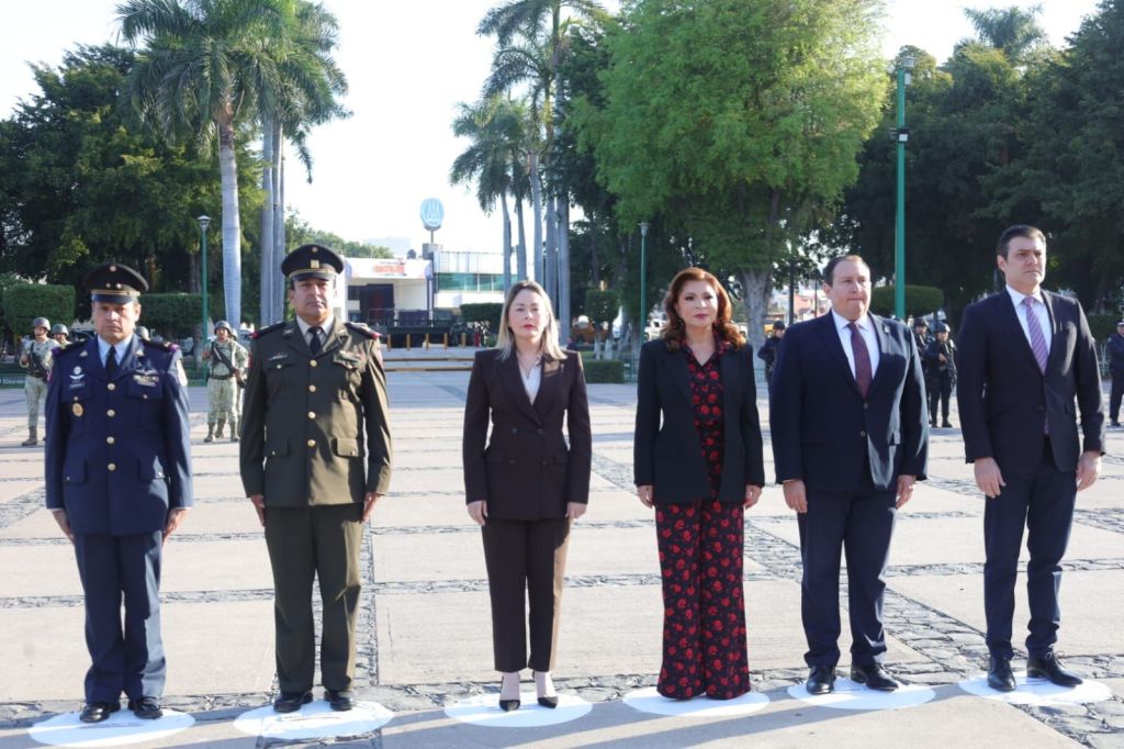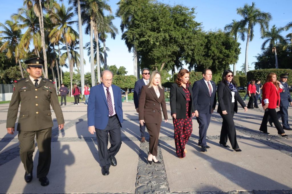 Acompañaron a la Secretaria de Educación, la Presidenta de la Mesa Directiva del Congreso del Estado, la Diputada Yeraldine Bonilla Valverde; el Presidente del Supremo Tribunal de Justicia, el Magistrado Jesús Iván Chávez Rangel; el Capitán Primero de Infantería, Juan Carlos Moreno Alvarado, representante de la Novena Zona Militar y el Teniente Coronel, Isaac Terrazas Sevilla, de la Base Aérea Número 10, de la Fuerza Aérea Mexicana.
