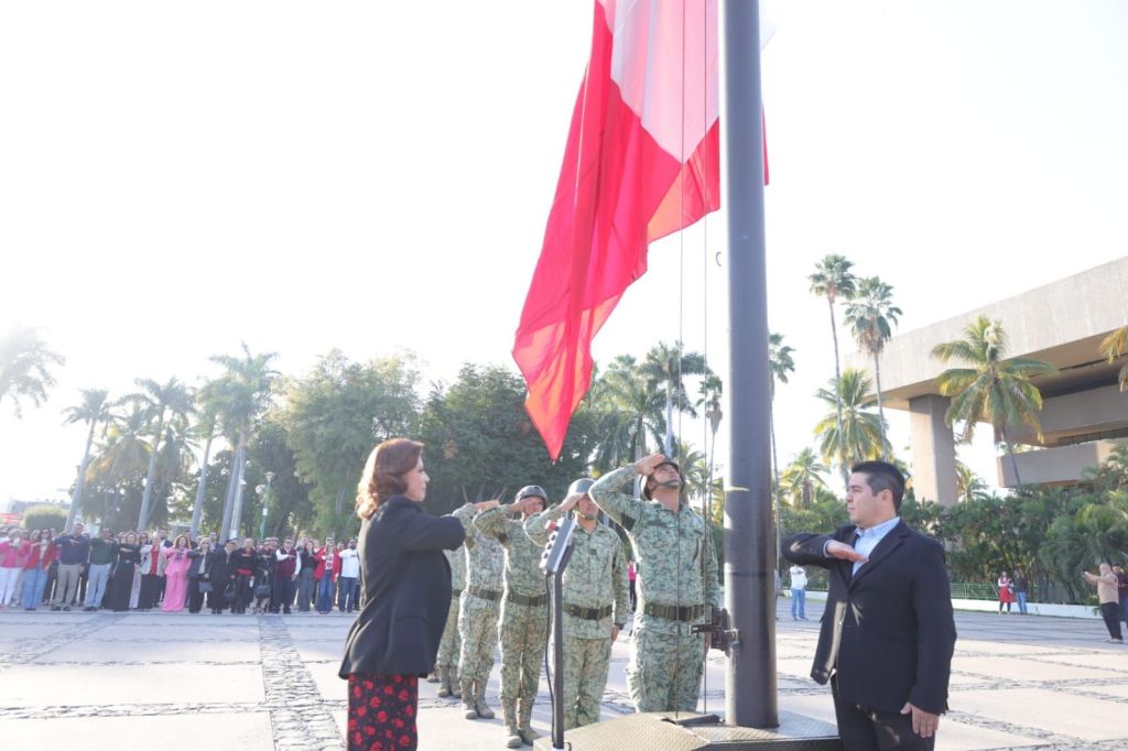 • Encabeza la Secretaria de Educación, Gloria Himelda Félix Niebla el acto cívico en Palacio de Gobierno_