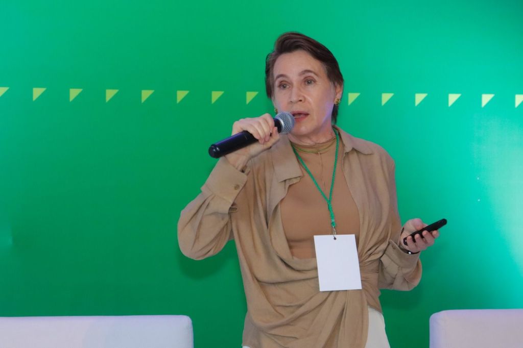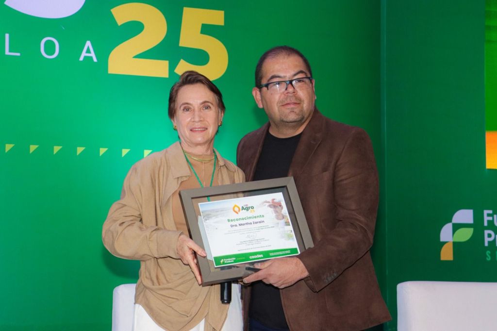 La Dra. Martha Zarain Herzberg, de CONFÍE, brinda la conferencia Plantas sanas en suelos vivos, en la Expo Agro Sinaloa 2025.
