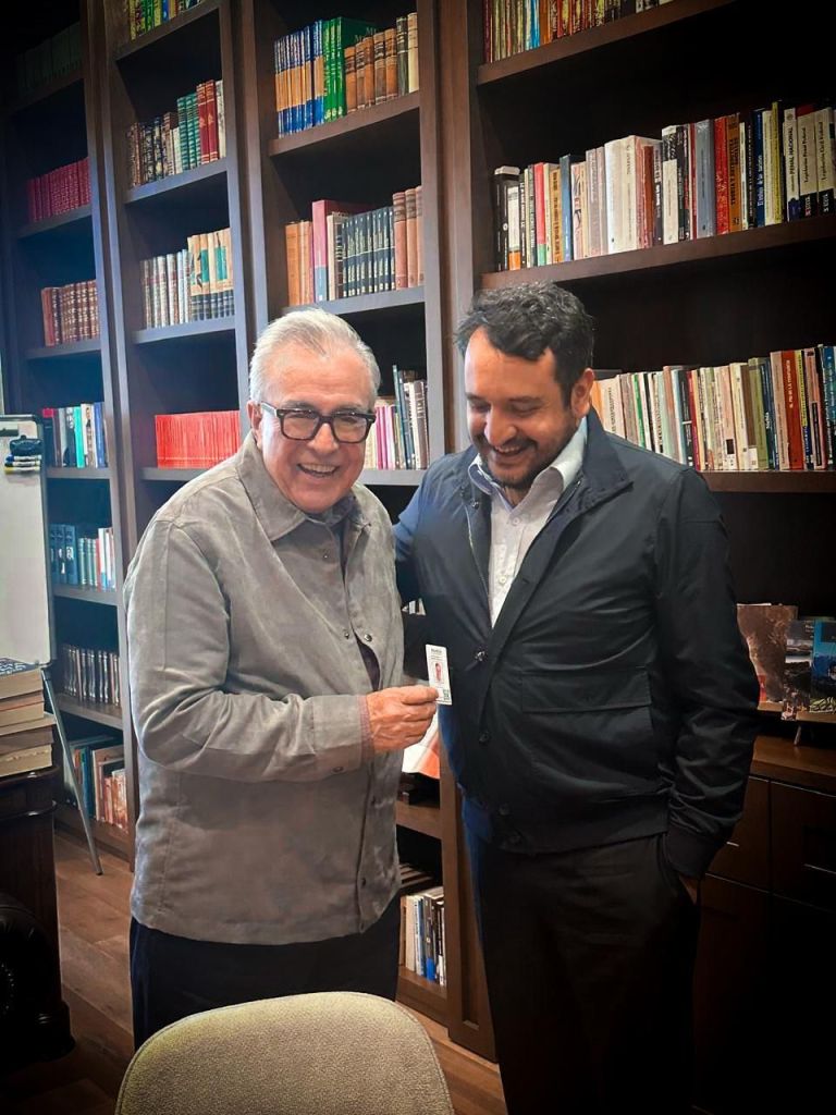 Recibe Rocha en su casa a Andrés López Beltrán, y le muestra su credencial de afiliación al partido.