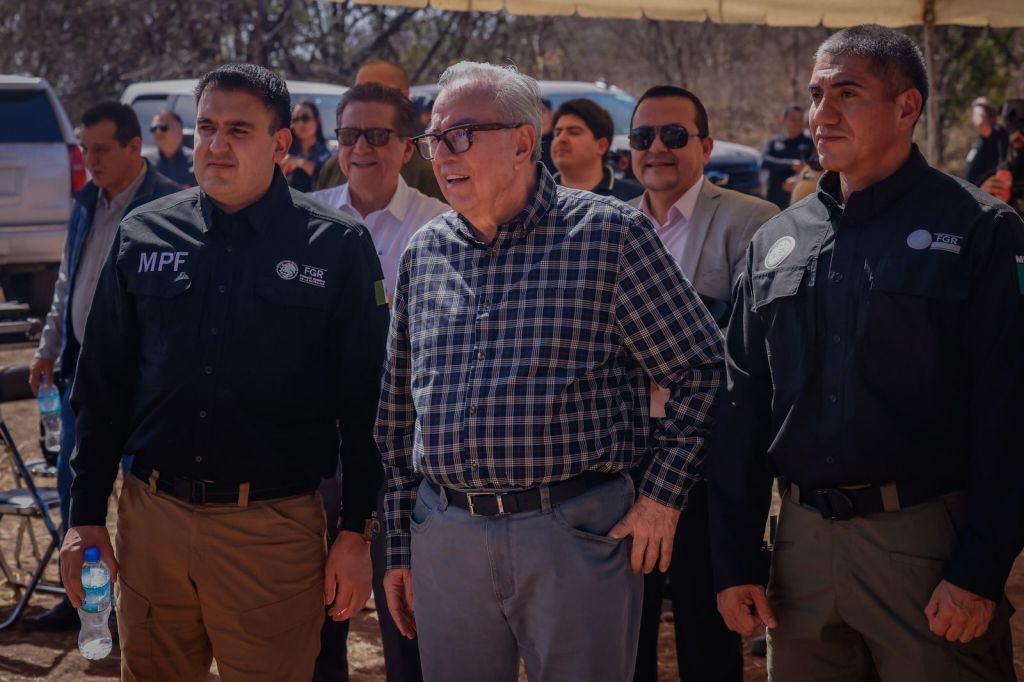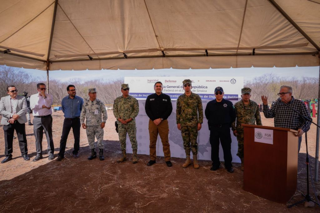 Culiacán, Sinaloa 20 de febrero de 2025.- Reiterando los lazos de colaboración entre los órdenes de gobierno para mantener la paz y fortalecer la estrategia de seguridad implementada a lo largo y ancho de Sinaloa el Gobernador Rubén Rocha Moya, acompañado del Delegado de la FGR Gonzalo Hernández Durazo, asistió el acto de incineración de estupefacientes en sus diversas modalidades y destrucción de objetos del delito.
