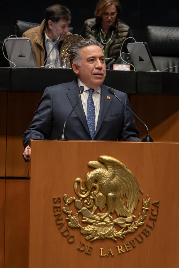 CDMX; 27 de febrero de 2025. – El senador Enrique Inzunza en calidad de presidente de la Comisión de Estudios Legislativos presentó su posicionamiento sobre el dictamen a la iniciativa por el que se aprobó el segundo párrafo del artículo 19 y se adicionan los párrafos segundo y tercero al artículo 40 de la Constitución Política de los Estados Unidos Mexicanos en materia de fortalecimiento de la soberanía nacional.