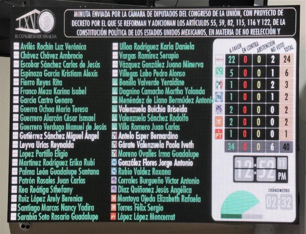 Culiacán, Sinaloa. A 05 de marzo de 2025. El Congreso del Estado aprobó este miércoles por unanimidad el Decreto del Congreso de la Unión que contiene reformas y adiciones diversas a la Constitución Política de México en materia de no reelección y nepotismo electoral.