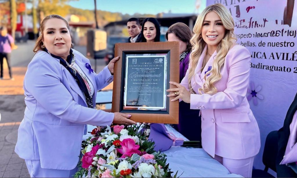 Surutato, Badiraguato, Sinaloa.- Por su esfuerzo, trabajo y entrega al servicio de las familias del medio rural, en el marco del Día Internacional de la Mujer, la Diputada Verónica Avilés Rochín tuvo a bien hacer entrega de merecidos reconocimientos a tres mujeres muy valiosas para todos los habitantes de esta zona de la sierra de Badiraguato.
