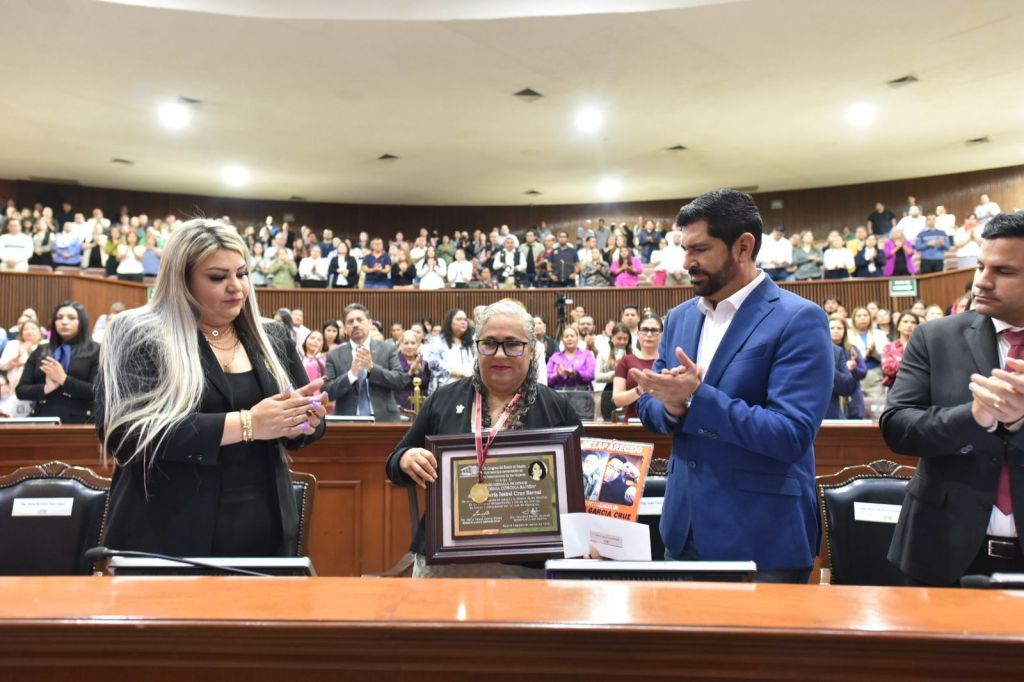 Culiacán, Sinaloa, 10 de marzo de 2025.-Congreso del Estado de Sinaloa entregó este lunes el Premio Medalla de Honor “Dra. Norma Corona Sapién 2025”, a la rastreadora y activista social María Isabel Cruz Bernal, por distinguirse y contribuir con sus acciones, virtudes, trayectoria y por su participación en la defensa de los Derechos Humanos.
