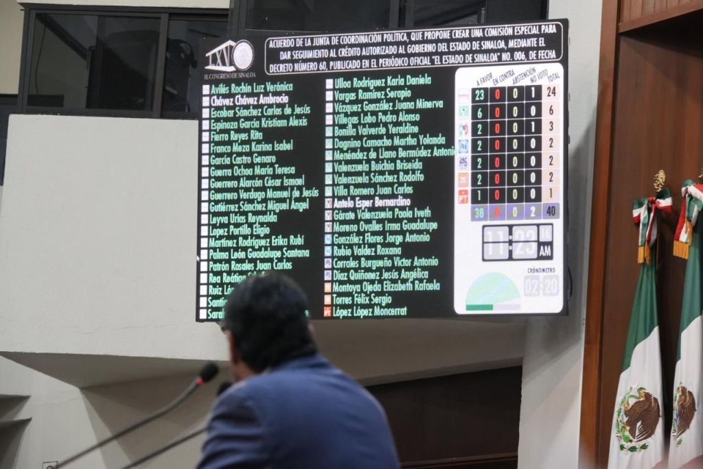 Culiacán, Sinaloa. A 18 de marzo de 2025.- Por unanimidad de los diputados y diputadas presentes, el Congreso del Estado de Sinaloa aprobó un Acuerdo enviado por la Junta de Coordinación Política, donde se propuso la creación de una Comisión Especial encargada de dar seguimiento al crédito de 2 mil 300 millones de pesos autorizado al Gobierno del Estado el mes de enero pasado.
