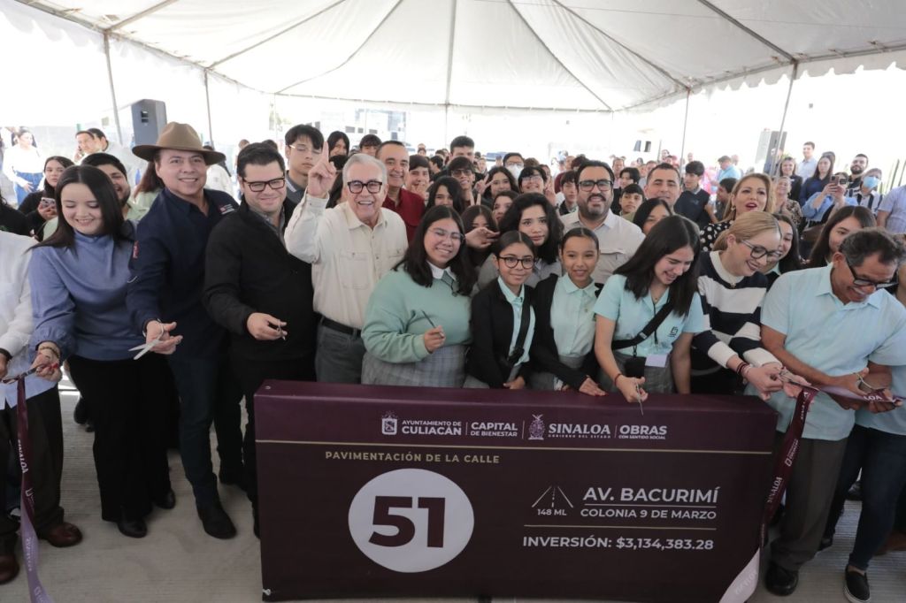 Culiacán, Sinaloa 20 de marzo de 2025.- Al entregar la pavimentación de la Avenida Bacurimí para beneficio de las familias del sector La Conquista, el gobernador Rocha anunció también la construcción de una secundaria en Valle Alto y otra en Alturas del Sur, reiterando la voluntad de impulsar el sector educativo, ante el crecimiento poblacional estimado por INEGI en 69 mil habitantes más.