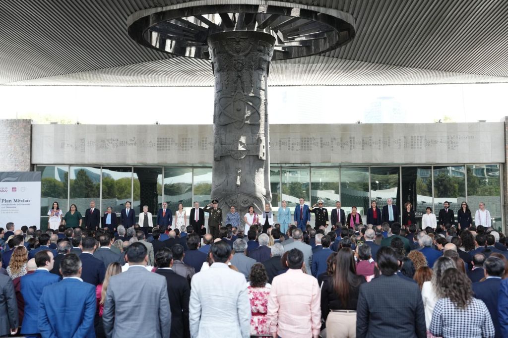 En su mensaje, la presidenta de México se refirió a los 18 puntos específicos que comprenden dicho plan, cuyo objetivo es colocar a nuestro país dentro de las 10 principales economías del mundo, y para ello solicitó el apoyo y la colaboración de empresarios y de todas las gobernadoras y gobernadores.