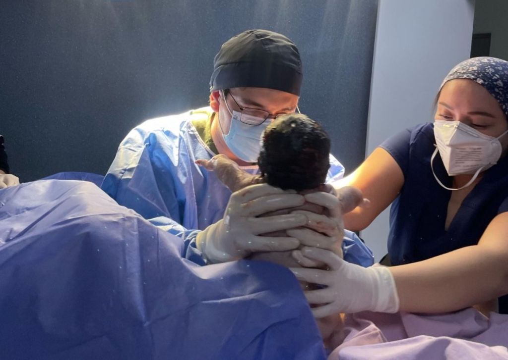 Es decir, a la misma hora que atendió su primer parto como médico, nació el mismo día, hace veinticinco años.