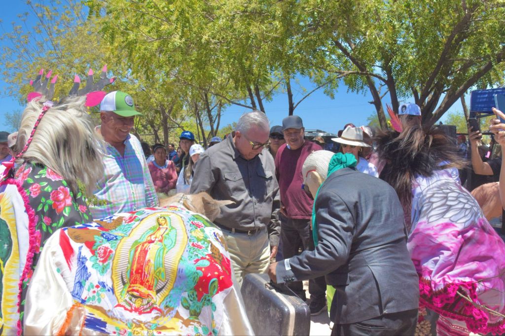 Este sábado el mandatario estatal también visitó la comunidad indígena de Tehueco en el municipio de El Fuerte, donde se desarrollan las celebraciones milenarias de la Semana Santa Yoreme, que conjugan las tradiciones católicas y la cultura nativa en la representación de la pasión, muerte y resurrección de Cristo, actividades que reúnen a cientos de pobladores y visitantes en sus Centros Ceremoniales.
