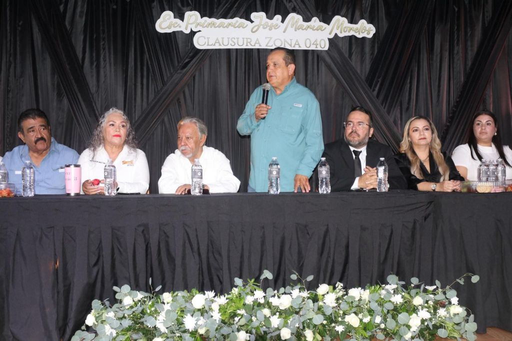 Durante la clausura, el Supervisor Orlando Soto Sandoval dio la bienvenida al líder sindical del magisterio estatal; al Jefe de Sector, Juan Héctor Almeida Vega; al Prof. Oscar Beltrán Ruiz, ex secretario general y consejero nacional del SNTE; Magdalena Angulo, coordinadora sindical; a directivos, padres de familia y alumnos.