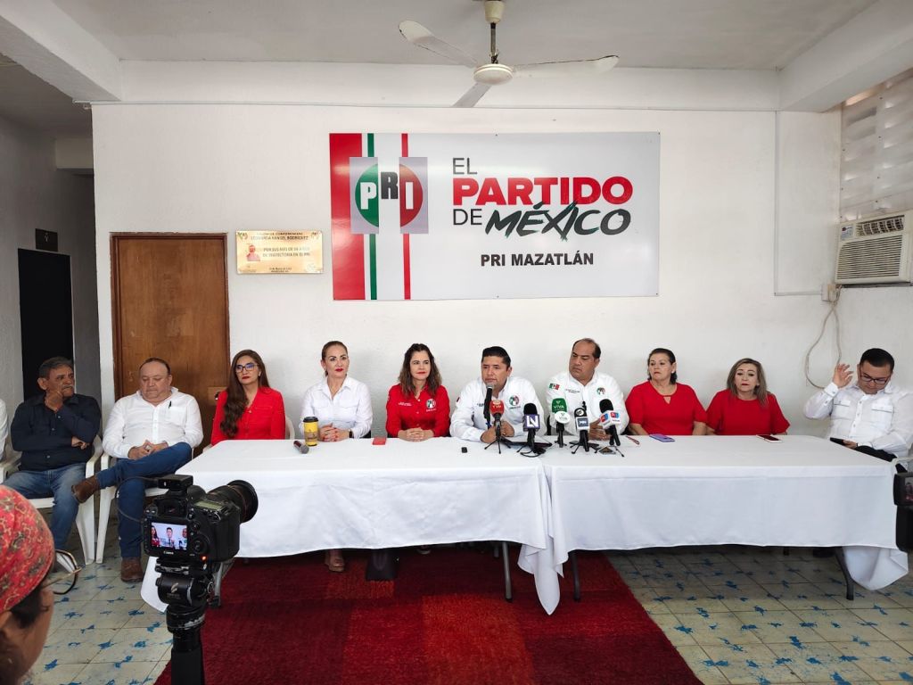 La dirigencia estatal del PRI, sostiene conferencia de prensa en el puerto de Mazatlán.