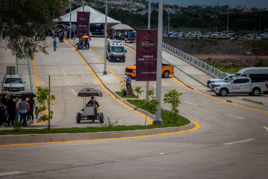 Y la pavimentación que une el Blvd. Santa Fe con el puente Humaya de 230 metros de longitud y 25 metros de ancho, con dos calzadas ambos sentidos, camellón central, ciclovías y banquetas, generando 996 empleos directos e indirectos durante su construcción y beneficiando a más de mil familias.