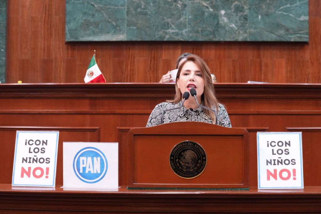 La diputada Roxana Rubio Valdez, también utilizó la expresión “Con las niñas y los niños no”, y citó los nombres de algunos niños y niñas a quienes le han quitado la vida en los últimos meses.
