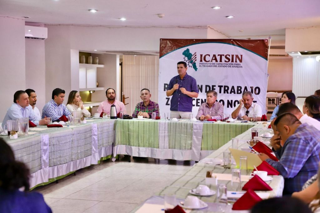 Guasave, Sinaloa a 13 de agosto de 2025.- Para fortalecer la vinculación con los sectores productivos, el Instituto de Capacitación para el Trabajo del Estado de Sinaloa (ICATSIN), dirigido por su Director General, Armando Camacho Aguilar, sostuvo una reunión estratégica con representantes empresariales y organismos camarales de la zona centro-norte, que abarca los municipios de Sinaloa, Guasave, Badiraguato, Mocorito, Salvador Alvarado y Angostura, acompañado de los directivos de los planteles de la zona centro-norte.