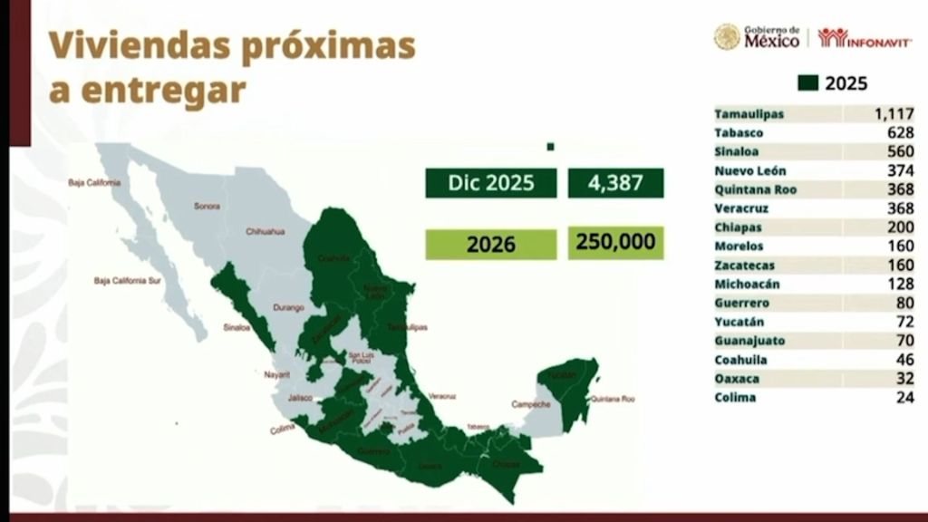 De un total de 4 mil 387 viviendas terminadas que entregará Infonavit a nivel nacional para diciembre del presente año, 560 de ellas se ubican en Sinaloa, precisó Romero Oropeza, quién agregó que Sinaloa cuenta con un total de 5 mil 822 proyectos iniciados, cifra que forma parte del global de 250 mil viviendas a nivel nacional que se entregarán en 2026.