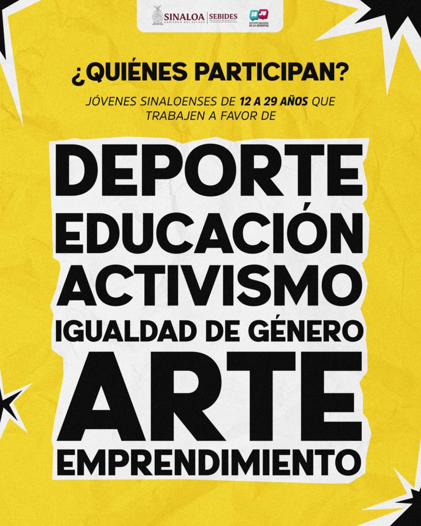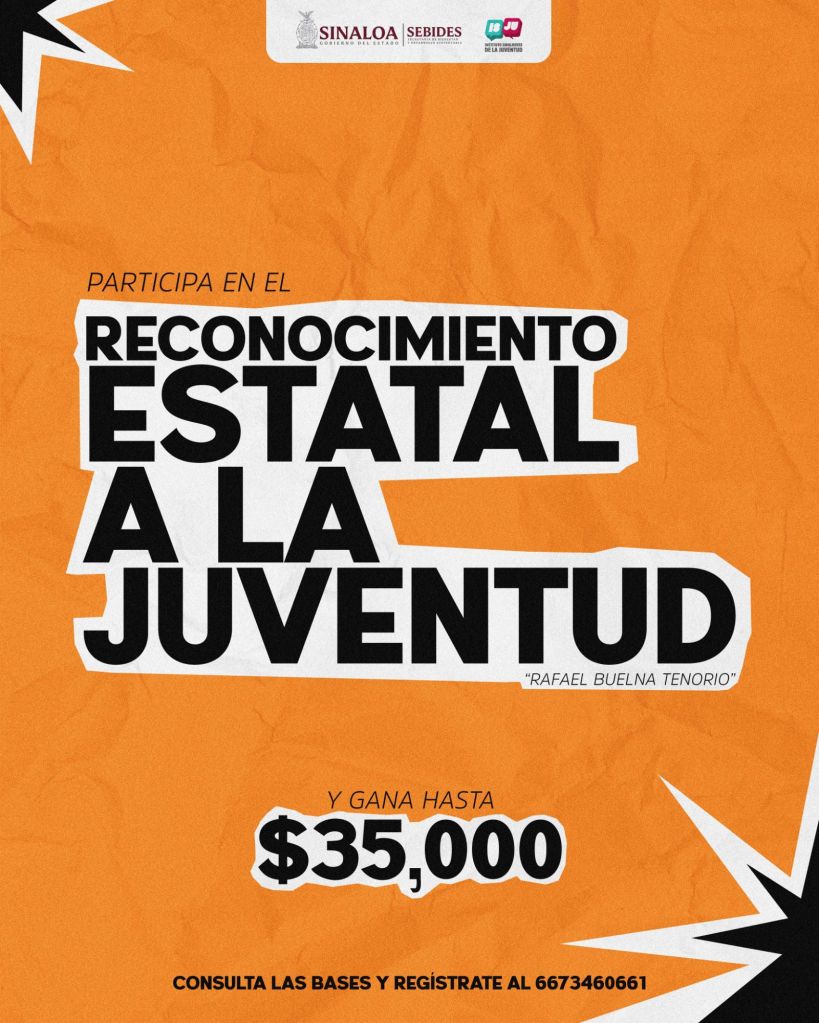 Con este reconocimiento, el Gobierno del Estado de Sinaloa reafirma su compromiso con el impulso de las juventudes y su talento. Te invitamos a participar y ser parte de esta iniciativa que visibiliza a quienes, con su trabajo, construyen un mejor futuro para nuestro estado.
