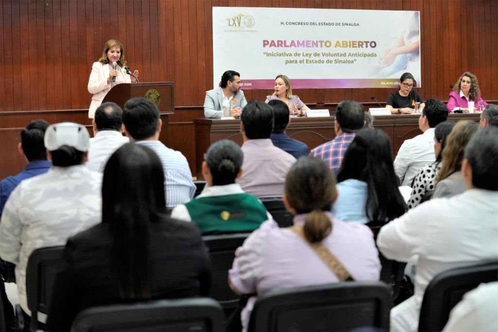 Culiacán, Sinaloa. A 25 de agosto de 2025. En el marco del parlamento abierto sobre la iniciativa de Ley de Voluntad Anticipada, promovida por el diputado César Ismael Guerrero Alarcón y la diputada Juana Minerva Vázquez González, la presidenta de la Junta de Coordinación Política, la diputada María Teresa Guerra Ochoa, destacó la relevancia de este tema y agradeció la participación de todos los sectores involucrados en su estudio.