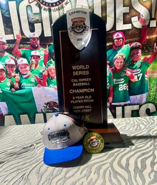El Secretario General de la Sección 53 del SNTE, Prof. Ricardo Madrid Uriarte, felicitó al destacado profesor de educación física, Fernando Noel Galindo Camacho, trabajador del Centro de Estudios de Bachillerato, por su magnífica participación como mánager de la selección mexicana infantil de béisbol que se coronó campeón mundial del torneo Cal Ripken World Series Babe Ruth League U-8 2025, que se llevó a cabo en la la ciudad de Cherry Hill New Jersey, USA.