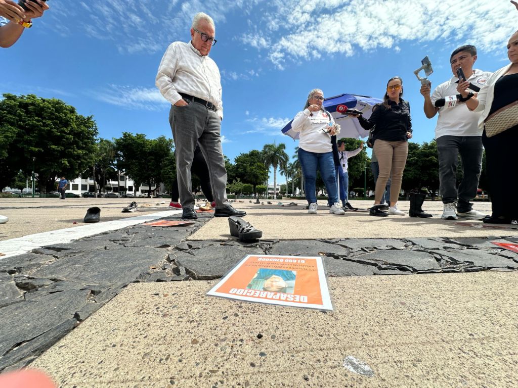 Culiacán, Sinaloa 29 de agosto de 2025. El Gobernador Rubén Rocha Moya refrendó su solidaridad y el apoyo de su gobierno a los colectivos de búsqueda de personas desaparecidas, tema en el que se ha trabajado institucionalmente desde el primer día de su gobierno, y en el que se han tenido avances importantes en cuanto a búsqueda e identificación de personas. Lo anterior durante un diálogo establecido con colectivos, ante el memorial de zapatos colocados sobre la explanada del Palacio de Gobierno, como símbolo de estas sensibles ausencias y de no cejar en el empeño de encontrarlas.