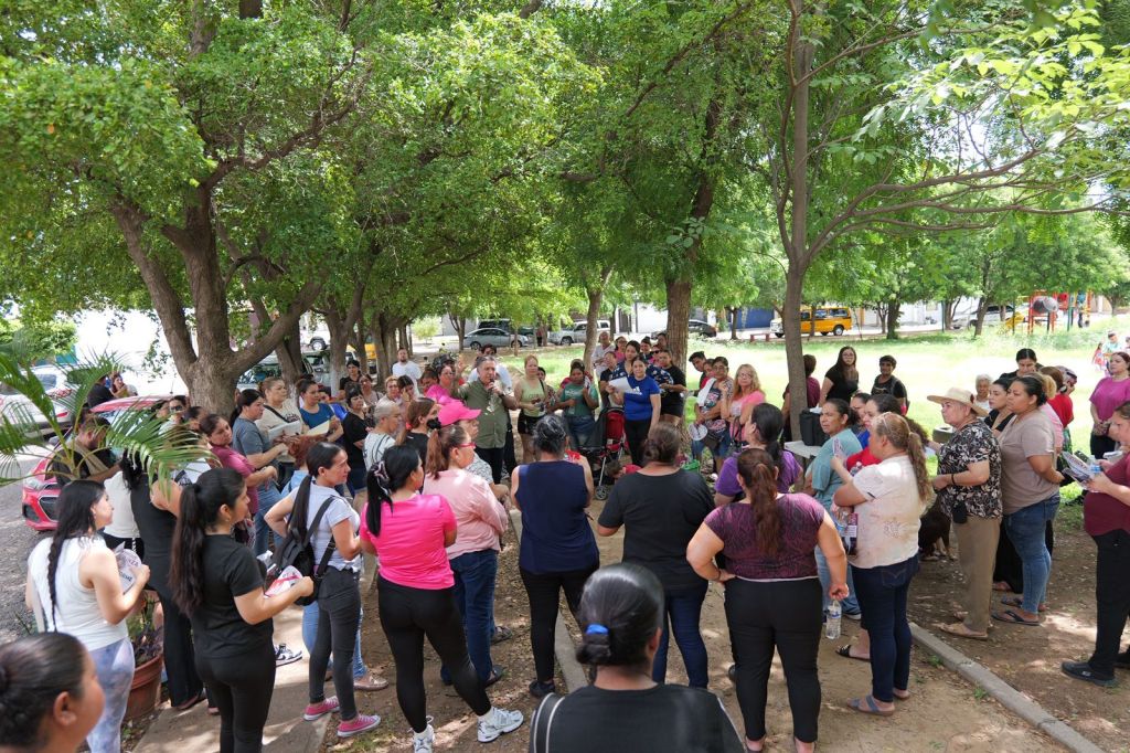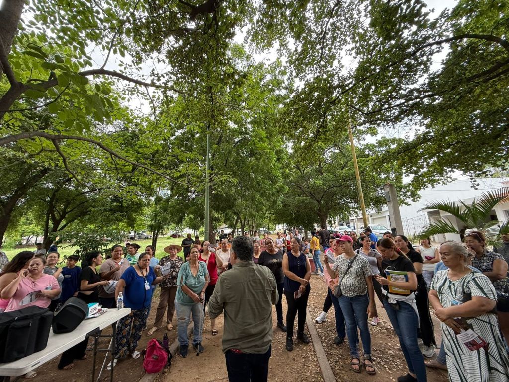 Esta mañana, hicimos nuestra asamblea informativa debajo de los árboles con vecinas y vecinos del fraccionamiento Los Ángeles, en #Culiacán.