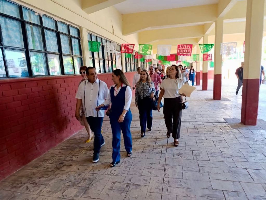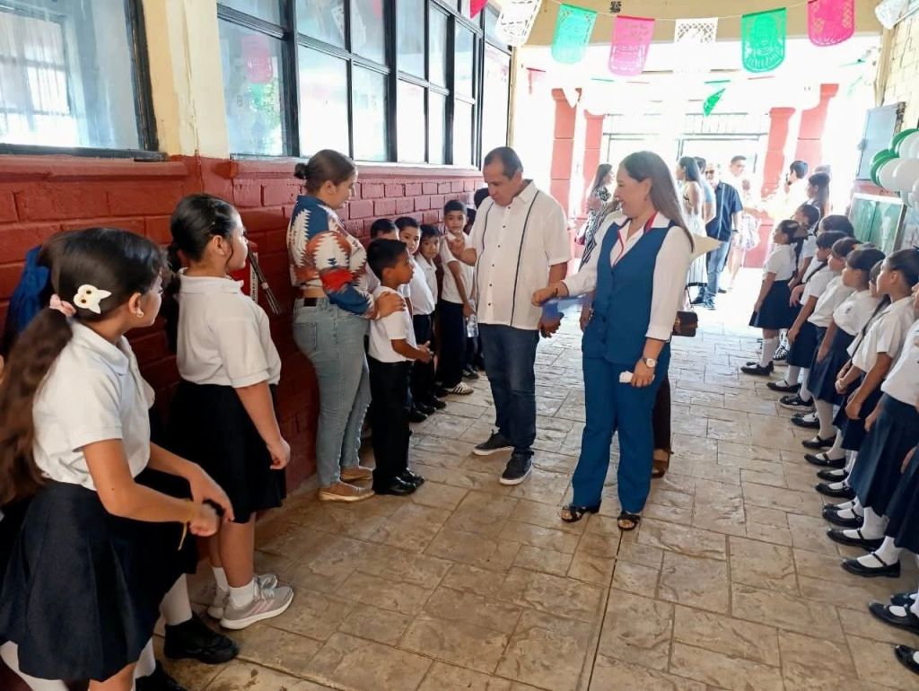 Con entusiasmo, el personal que integra la escuela primaria María Elena Vizconde Mat., recibió la visita del Secretario General Prof. Ricardo Madrid Uriarte.