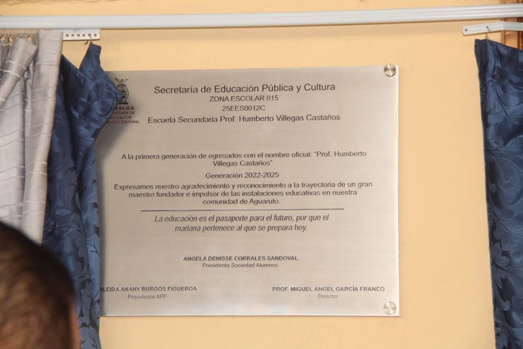 El Mtro. Ricardo Madrid Uriarte, Secretario General de la Sección 53 del SNTE, acudió a la Sindicatura de Aguaruto a realizar la develación de la placa conmemorativa en honor al Mtro. Humberto Villegas Castaños, fundador de la secundaria que hoy lleva su nombre.