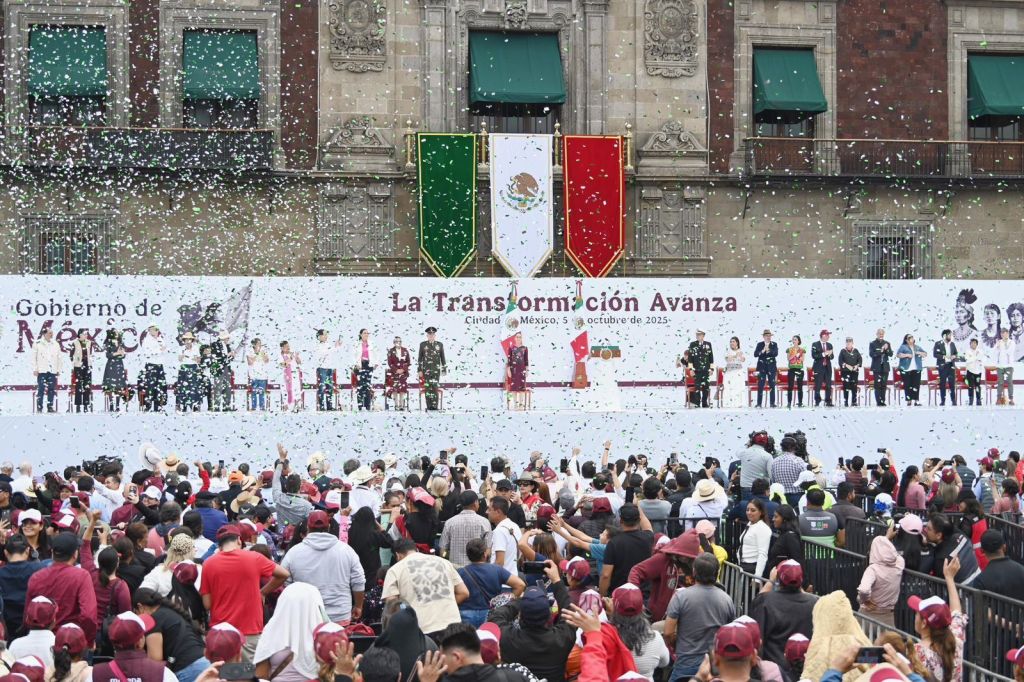 En esta fiesta del pueblo mexicano, desde el Zócalo capitalino, la presidenta Sheinbaum, acompañada de su gabinete legal y ampliado, así como gobernadores y gobernadoras y ante miles de ciudadanos, destacó los principales resultados en temas de salud, seguridad, infraestructura, economía, educación, programas sociales que garantiza la justicia social, derechos humanos, libertades, democracia y soberanía a las y los mexicanos.