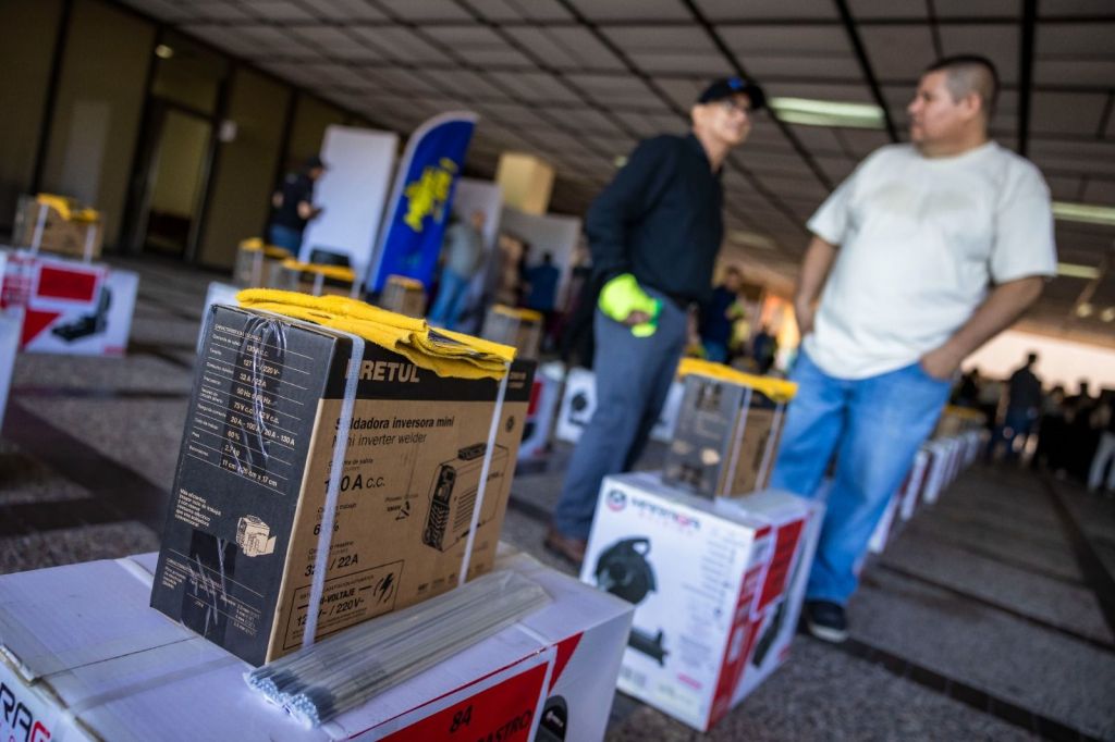 En total se beneficiaron a 150 mujeres y hombres a quienes se les hizo entrega de 740 equipos valuados en 1.2 millones de pesos para diversos oficios, como carpintería, herrería, plomería y electricidad.