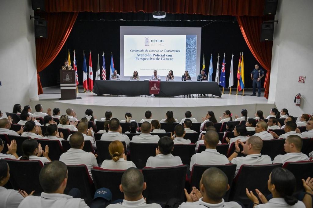 Culiacán, Sinaloa, 10 de octubre de 2025. La Secretaría de las Mujeres del Gobierno del Estado de Sinaloa y la Universidad de la Policía (UNIPOL) llevaron a cabo la ceremonia de entrega de constancias a mujeres y hombres cadetes por la culminación de su profesionalización en materia de: Atención Policial con Perspectiva de Género.