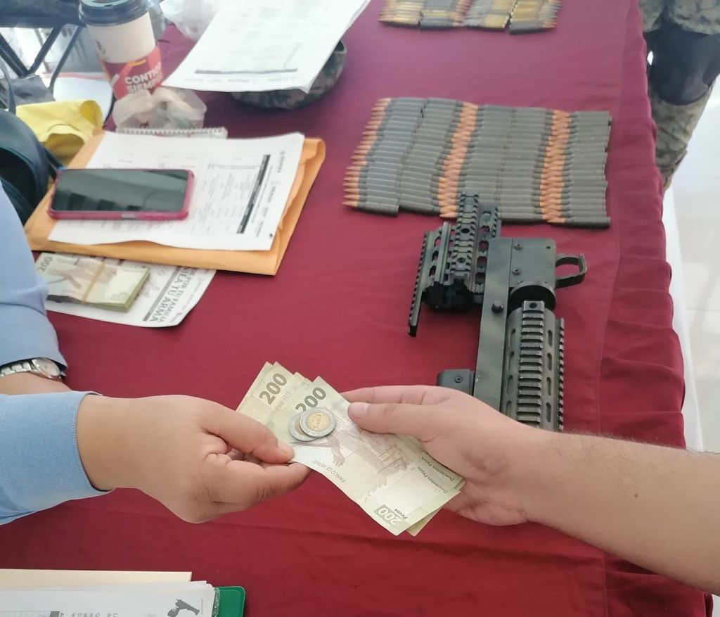 A cambio de las armas y explosivos canjeados por la ciudadanía, se entregó más de 1 millón de pesos en efectivo entre las personas participantes, lo que es posible gracias a la aportación de recursos autorizada por el Gobernador Rubén Rocha Moya, quien ha fortalecido esta campaña preventiva enmarcada en la estrategia nacional «Sí al Desarme, Sí a la Paz» que impulsa la Presidenta Claudia Sheinbaum Pardo.