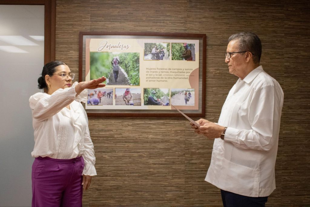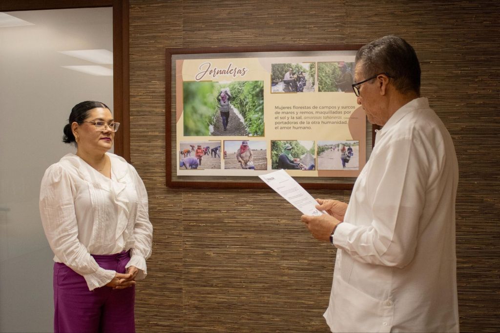 Además de tomarle la protesta de ley, el Secretario Castro Meléndrez hizo entrega del nombramiento conferido por el propio Gobierno Rubén Rocha Moya y la exhortó a realizar con humanismo y apego a la ley su cargo.