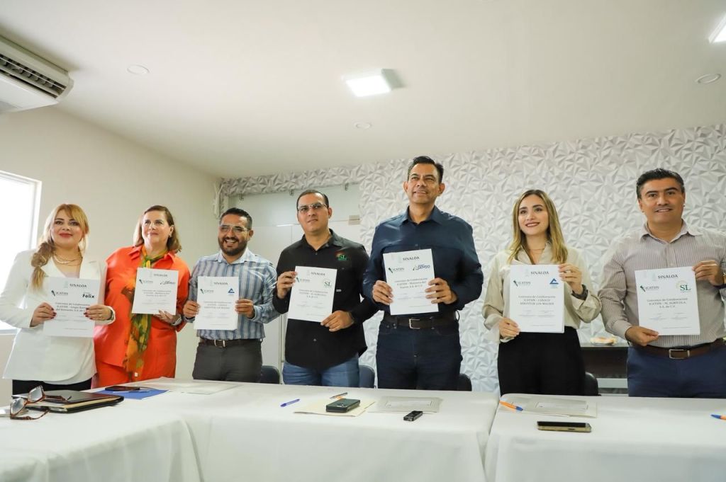 Durante una gira de trabajo por el norte del estado, la Directora General del ICATSIN, Brenda García Félix, encabezó la firma de convenios de colaboración con Molinera del Fuerte, Servytur, Grupo Félix y SL Agrícola integrantes de CANACO que preside Simón Dorado Huitrón.