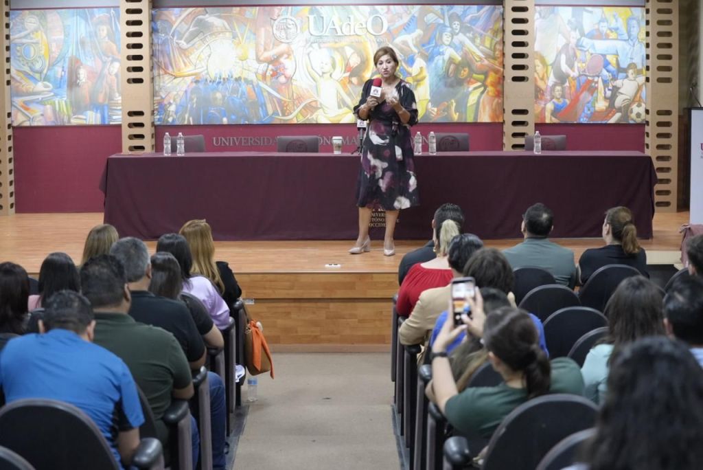Culiacán, Sinaloa. A 25 de octubre de 2025. La presidenta de la Junta de Coordinación Política del Congreso del Estado de Sinaloa, diputada Tere Guerra, expuso ante estudiantes y personal de la Universidad Autónoma de Occidente (UAdeO) las principales reformas y buenas prácticas legislativas implementadas en la 65 legislatura, con énfasis en temas de seguridad, derechos de las mujeres y participación ciudadana.