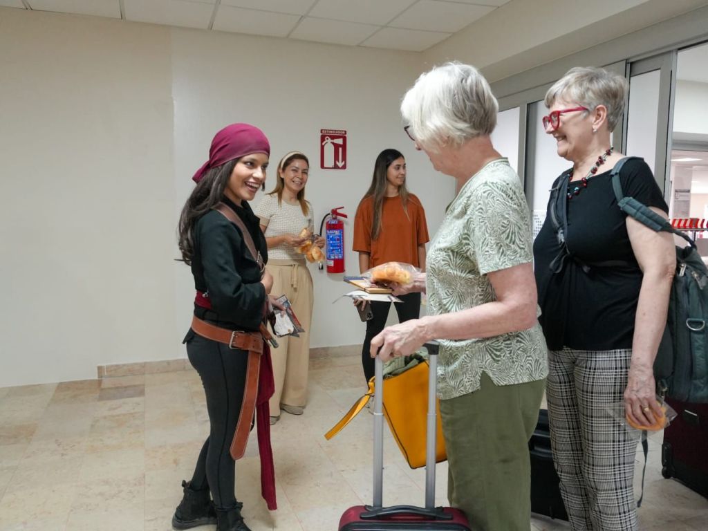 Al bajar del avión los pasajeros disfrutaron de una activación con temática de Día de Muertos, donde una elegante Catrina acompañada de su Catrín les obsequiaron pan de muerto. Y antes de salir de la terminal aérea, presenciaron otra activación con temática de piratas.