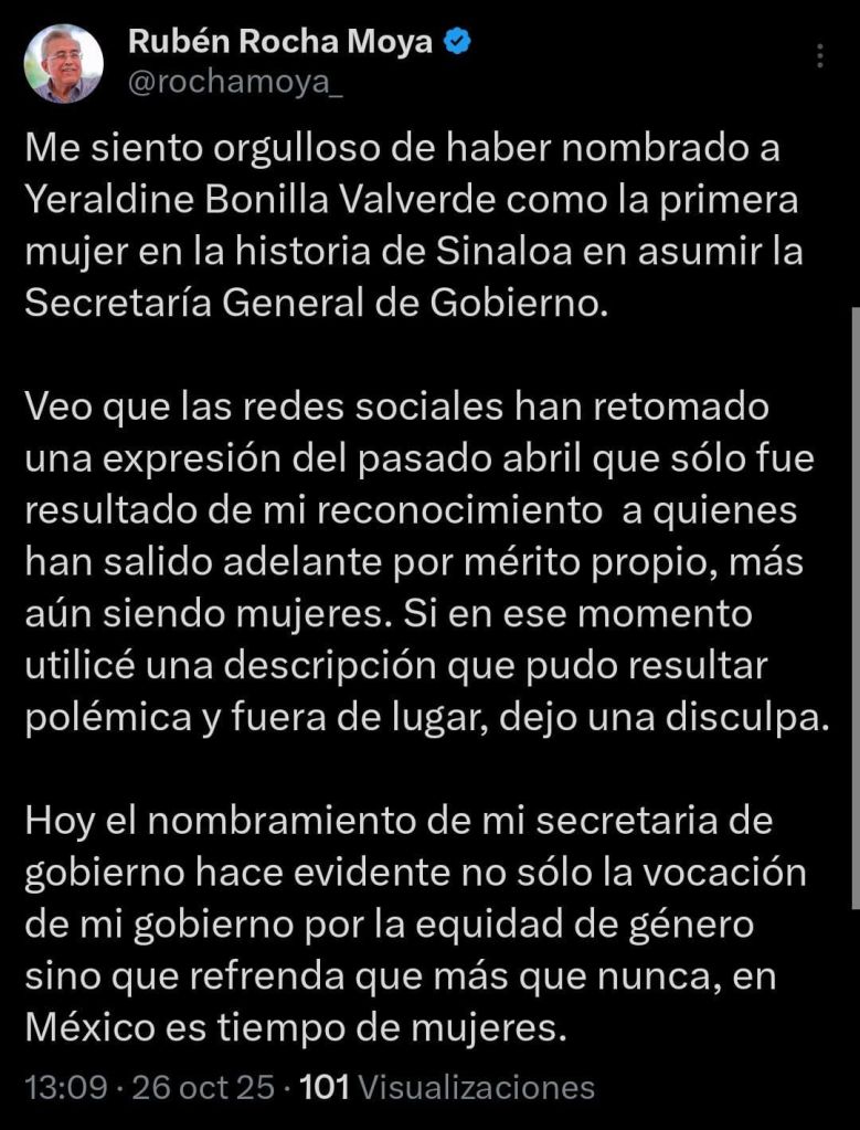 Rubén Rocha Moya Publicado el 26 octubre, 2025 por cuateavena Compártelo: Compartir en X (Se abre en una ventana nueva) X Compartir en Facebook (Se abre en una ventana nueva) Facebook Me gusta Cargando... Relacionado