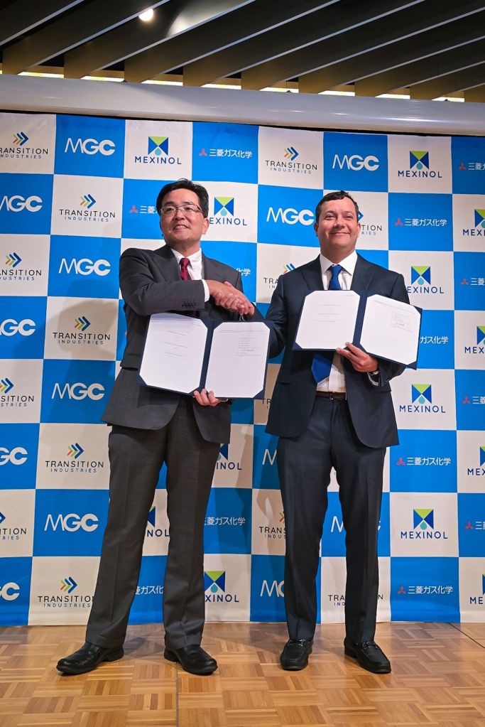 Tokio, Japón, 6 de noviembre de 2025. Transition Industries LLC y Mitsubishi Gas Chemical Company (MGC) firmaron una carta de intención para la venta de metanol a largo plazo, como parte del proyecto Pacífico Mexinol, que se perfila como la planta de producción de metanol de ultra bajas emisiones de carbono más grande del mundo. Tendrá capacidad para producir 2.1 millones de toneladas anuales y se desarrollará en la comunidad de Paredones, municipio de Ahome, a nueve kilómetros del puerto de Topolobampo, Sinaloa.