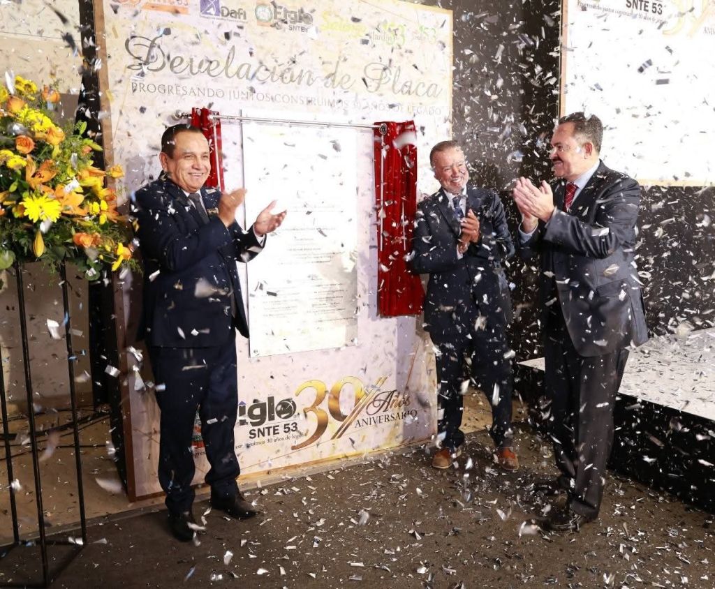 FIGLOSNTE 53 conmemora tres décadas de servicio ininterrumpido a los trabajadores de la educación, consolidando un legado de compromiso y dedicación hacia las familias sinaloenses. En un emotivo acto, el Prof. Ricardo Madrid Uriarte, Secretario General de la Sección 53 del SNTE y presidente del Comité Técnico de FIGLOSNTE 53, acompañado de los fundadores del fideicomiso, Prof. Daniel Amador Gaxiola y Lic. Martín Benito Pacheco Ibarra, develaron la placa conmemorativa en reconocimiento al esfuerzo y dedicación de los ex secretarios generales y representantes de Figlosnte 53 en cada región del estado.