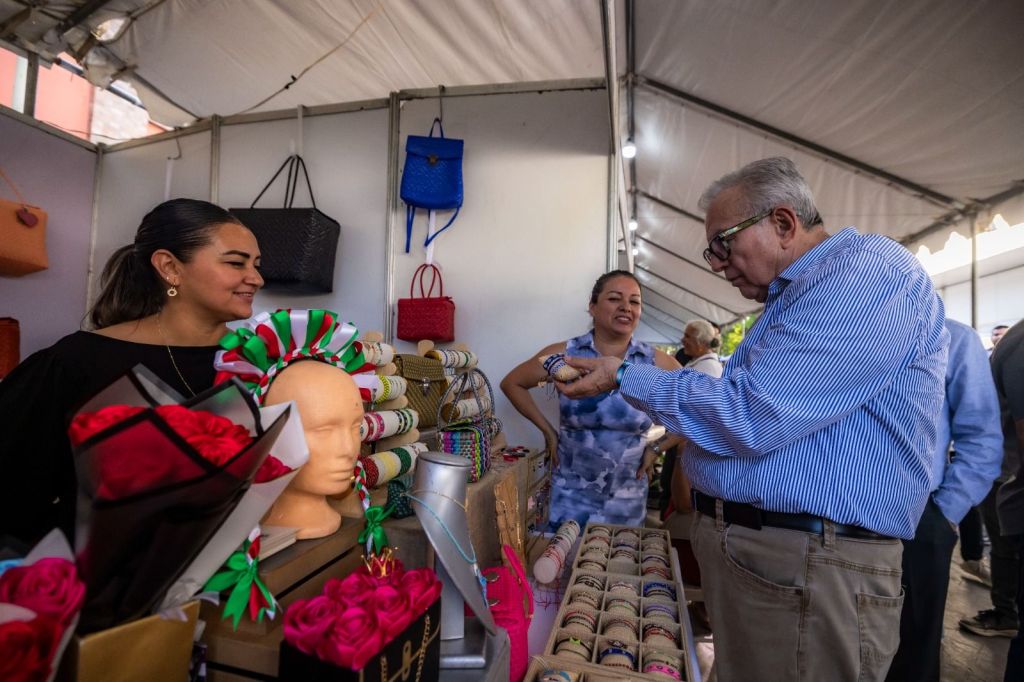 Una vez concluida la ceremonia de la presentación del libro, que tuvo lugar en el auditorio del MIA, el gobernador del estado visitó varios stands de la FIL, donde platicó con los visitantes y los expositores, y hasta compró artesanías en uno de los puestos, ubicados en la calle Ángel Flores, a un costado del auditorio.
