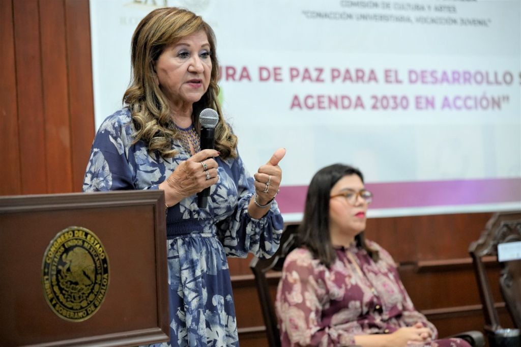 El evento fue inaugurado por la diputada Tere Guerra, presidenta de la Junta de Coordinación Política del Congreso del Estado, quien dio a conocer que esta actividad organizada por la Comisión de Cultura y Artes del Poder Legislativo, busca construir desde la cultura un camino hacia el desarrollo sostenible y la paz.