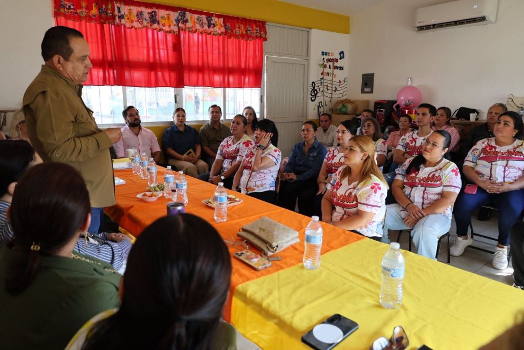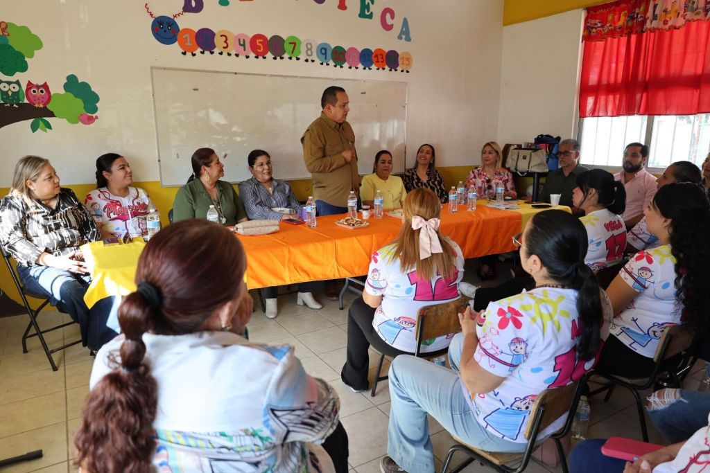 La Directora, Aileth Paola Pérez Millán; la Supervisora de la zona escolar 004, Lucila Elena Cervantes Azcarrega; la Jefa de Sector, Alma Yadira Meza Rendón; y la Delegada, María Concepción Beltrán Félix, agradecieron la presencia del dirigente.