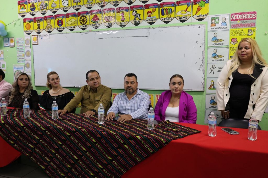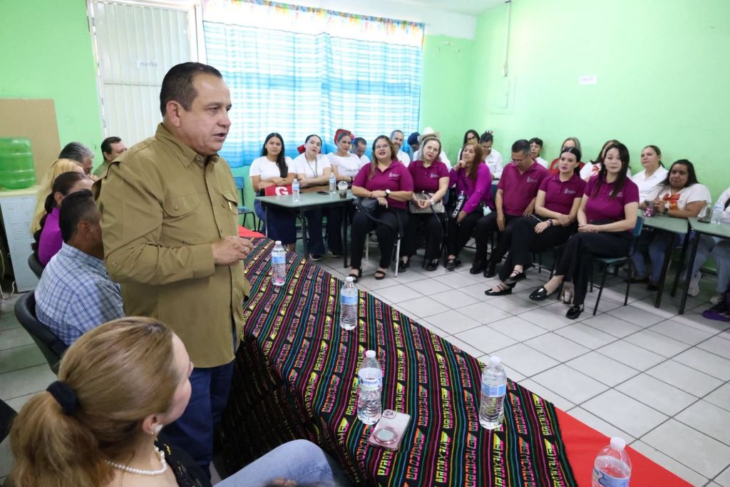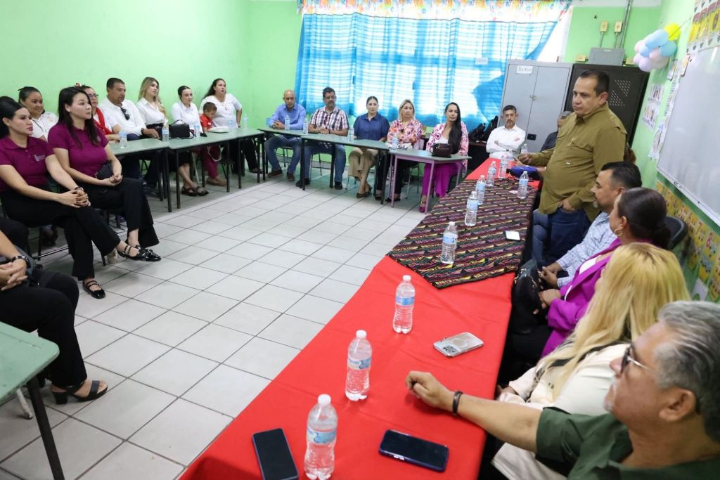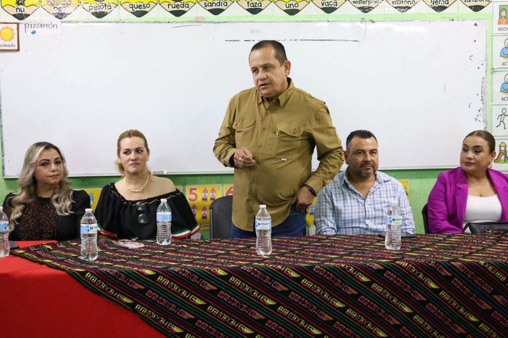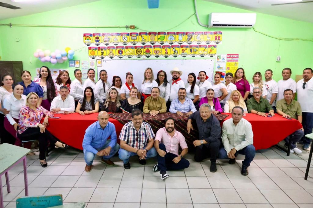 El dirigente presentó la agenda laboral y prestacional del magisterio estatal, agradeciendo el acompañamiento de los maestros: Walberto Sanchez López, Jefe de Sector; Gloria Elena Castañeda Ruiz, Supervisora; María Antonieta López Fernández, Directora; Anibar Airam Valdez Villarreal, Representante de escuela; Laura Montserrat García Castro, Directora encargada de la primaria Emiliano Zapata; Nathalia de Jesús Cota Peñuelas, Representante de escuela; e Integrantes de la Directiva Seccional Sindical.