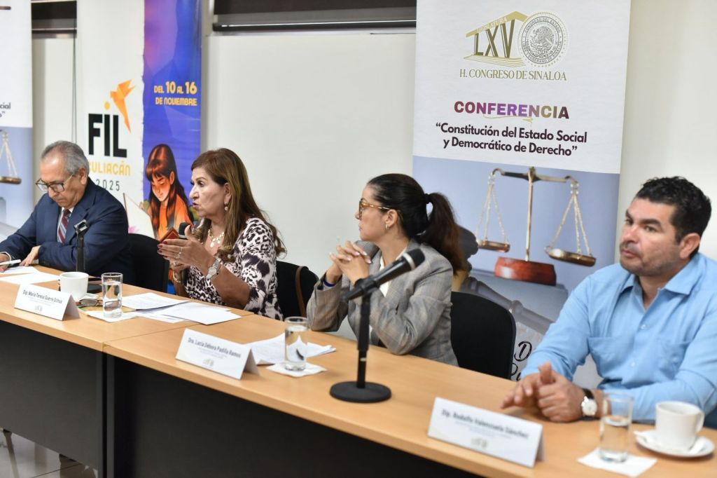 Culiacán, Sinaloa. A 14 de noviembre de 2025.- El Congreso del Estado de Sinaloa llevó a cabo una conferencia magistral sobre Constitución y Estado Social y Democrático de Derecho, impartida por la doctora Lucía Débora Padilla Ramos, magistrada especialista en derecho contencioso administrativo del Tribunal Superior de Justicia de Valencia y Canarias, España.