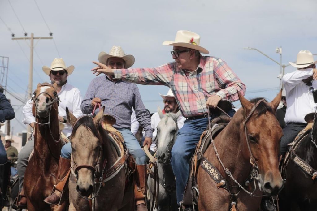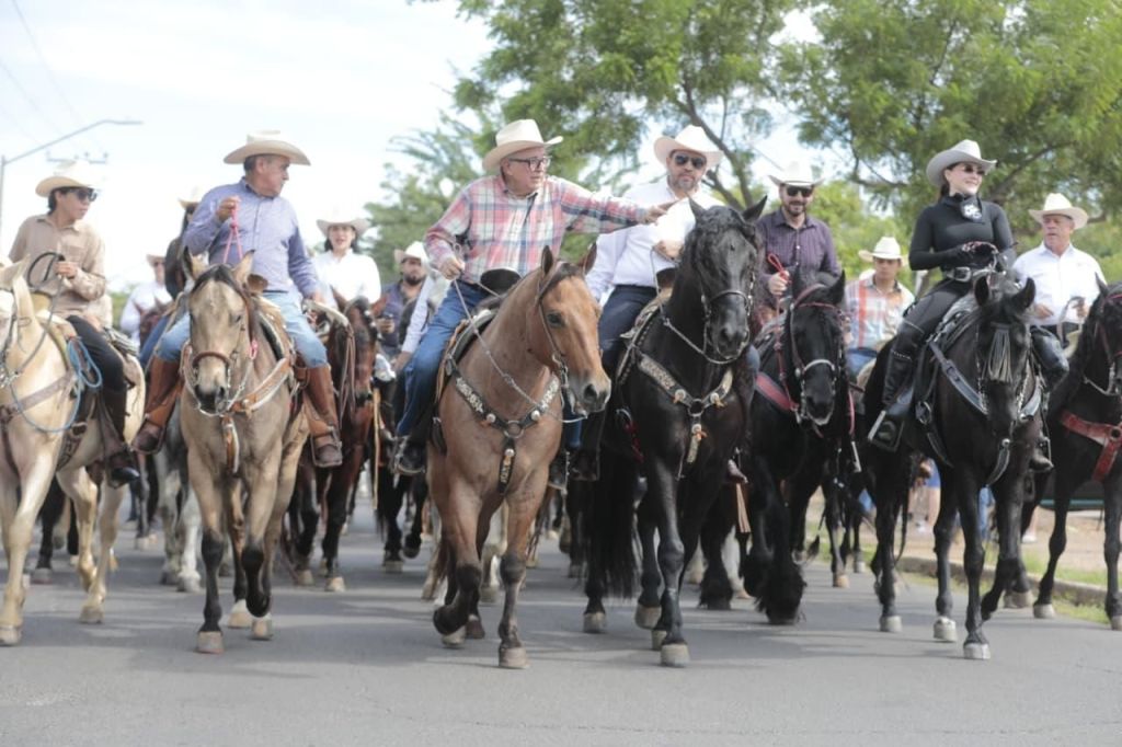 Acompañado del presidente de la Unión Ganadera Regional de Sinaloa, José Alfredo Sáinz Aispuro, del secretario de Agricultura, Ismael Bello y de un contingente aproximado de 2 mil jinetes y 737 equinos, refrendó su compromiso con el sector ganadero sinaloense, para mejorar las condiciones de quienes se dedican a este sector primario, que forman parte del motor económico de la entidad, también agradeció al gremio por la realización de este evento de mucha acogida por los sinaloenses, en especial por los más pequeños quienes se divierten entre juegos mecánicos y la exposición de ganado bovino, porcino y ovicaprino.