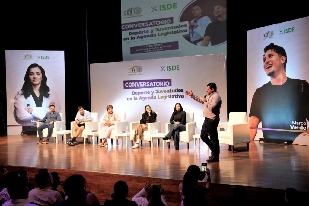 Culiacán, Sinaloa. A 19 de noviembre de 2025.- En un emotivo encuentro organizado por el Congreso del Estado y el ISDE, bajo el tema “Deporte y Juventudes en la Agenda Legislativa”, los medallistas olímpicos María del Rosario Espinoza y Marco Alonso Verde compartieron sus experiencias deportivas con cientos de niñas, niños, adolescentes y jóvenes sinaloenses, donde reafirmaron que el deporte es una herramienta de transformación social y construcción de paz.