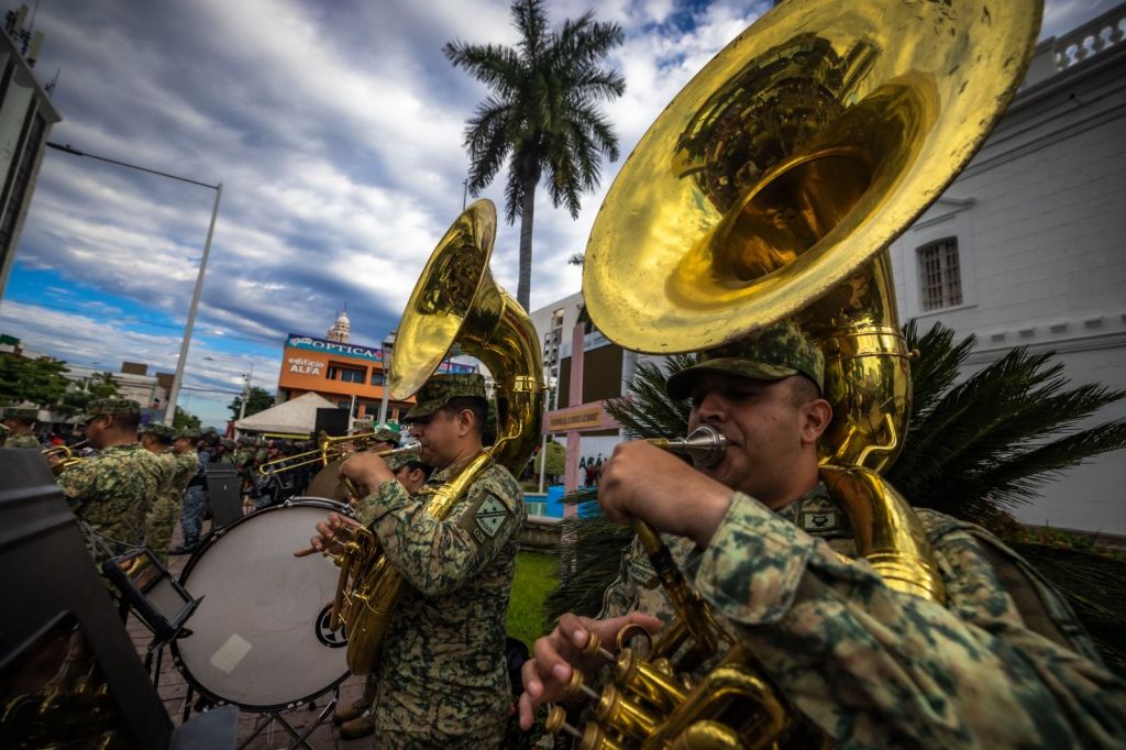 Luego de la conclusión de esta ceremonia, que finalizó con el marcial Toque Tres de Diana en honor a los ascendidos, y el Himno Nacional, el gobernador Rocha, acompañado por los mandos militares y autoridades civiles, subió al balcón de Ayuntamiento para presenciar desde ahí el tradicional desfile cívico militar, que abrió la Banda de Guerra del 94 Batallón de Infantería de la Novena Zona Militar.